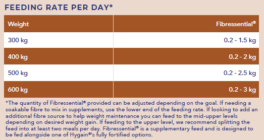 1. Introduce Fibressential® to your horse's diet gradually over a 7 - 14 day period.