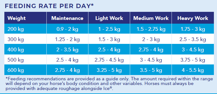 1. Introduce Ice® to your horse's diet gradually over a 7 - 14 day period.