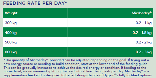 1. Introduce Micrbarley® to your horse's diet gradually over a 7 - 14 day period.
