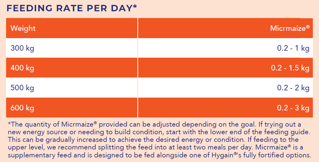 1. Introduce Micrmaize® to your horse's diet gradually over a 7 - 14 day period.
