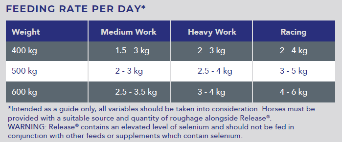 1. Introduce Release® to your horse's diet gradually over a 7 - 14 day period.