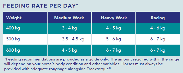 1. Introduce Tracktorque® to your horse's diet gradually over a 7 - 14 day period.