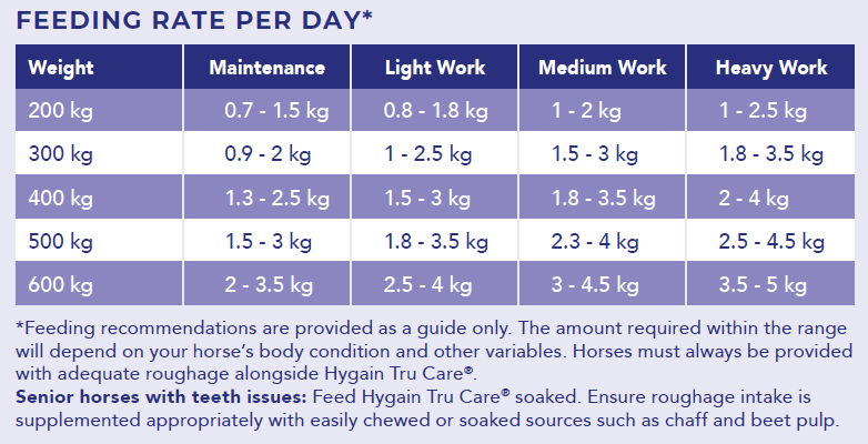 1. Introduce Hygain Tru Care® to your horse's diet gradually over a 7 - 14 day period.