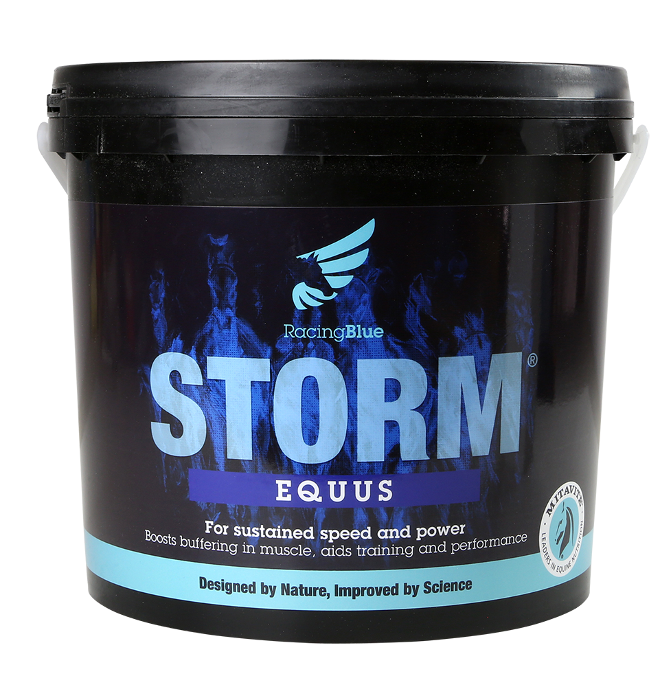 STORM® Equus is designed for horses undertaking intense or shuttle-type exercise, including racing, eventing, showjumping, polo, reining, cutting, barrel racing and carriage driving. Developed by Racing Blue, it features ProCarnosine®, a naturally occurring dipeptide found in muscle. ProCarnosine® supports the body’s natural carnosine levels, which play a key role in moderating muscle acidity during fast or repeated exercise.